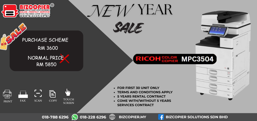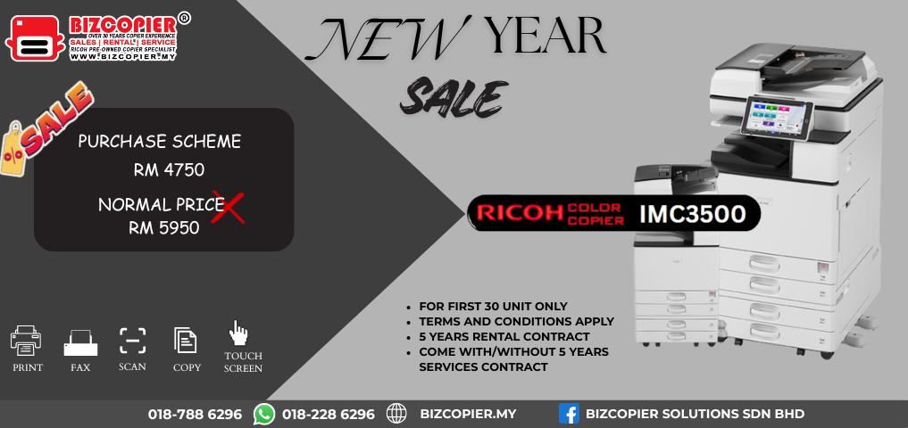Throughout the Klang Valley, we supply Ricoh copier machine as we strive to keep your business running and understand how important printing is to your company. That is why we invest our time in developing the best print solution for you and being there for you should it need servicing or you have any issues. We pride ourselves on our unbeatable customer service – the people at Bizcopier Solutions are what make us your number one choice.